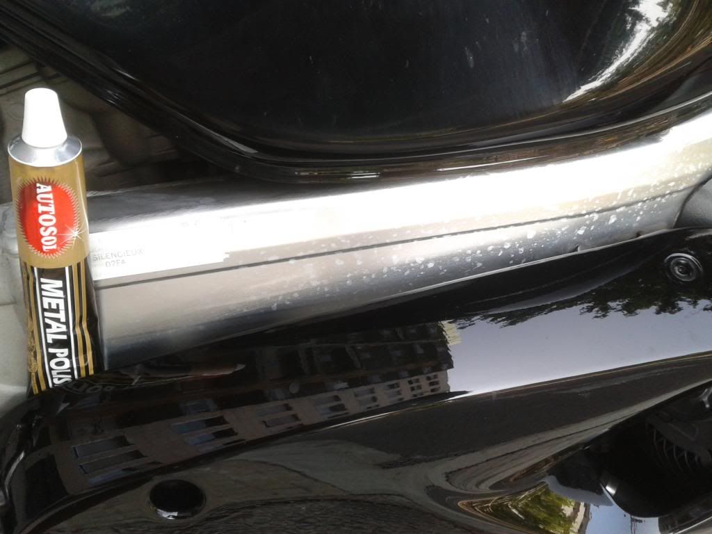 #1• Como algunos sabéis el chasis de mi moto presenta en algunas zonas suciedad y daños en otras. Se puede decir que en la zona rugosa esta sucia y en la zona lisa rayado y marcado por algún producto químico. Hace tiempo que le doy vueltas a la opción de pulir, pero lo que tengo claro es que no quiero brillo(y mucho menos efecto espejo), sino eliminar las marcas. En el chasis hay que diferenciar claramente dos zonas: 1º La zona lisa y 2º la zona rugosa. La cuestión es qué utilizar en cada zona teniendo en cuenta que no quiero alterar sus características(no quiero alisar la zona rugosa). He leído opiniones de cómo pulir, pero me gustaría que alguien me aconseje de forma detallada, o sea, mencionando las herramientas y productos a utilizar y explicandolo como hay que explicarlo a un niño de 5 años. Yo dispongo de un taladro progresivo, alguna boina de algodon para incorporar y el pulimento de metal de la foto.