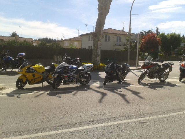 #3• Ochi, su amigo de la Gsxr600 y yo hemos ido a dar una vuelta corta. Como siempre todo bien, buen almuerzo y algunas curvas. La anecdota para mi ha empezado antes de iniciar las curvitas. Venía ligero por el carril central de la autopista pensando que hacia buen tiempo y se circulaba muy bien, cuando un coche ha invadido repentinamente mi carril teniendo yo que cortar y desplazarme al carril izquierdo. Estaba pensando en lo que le iba a decir al imprudente conductor cuando éste invade el carril izquierdo, en el que me encuentro, y me veo obligado a meterme entre el quitamiedo y el coche, por el arcén izdo. He hecho sonar el claxón y el coche se ha apartado. Ahora faltaba la parte difícil, me encontraba en el arcén izquierdo frenando suavemente en curva de la autopista, el arcén estaba super sucio lleno de tierra. Era difícil girar sin caerse. Poco a poco he vuelto a entrar en el carril y recuperado la normalidad, pero ha faltado poco muy poco. He alcanzado al vehículo que casi provoca el accidente y al ponerme a su altura he visto dos abueletes rogandome disculpas, he gritado algo dentro del casco y he continuado. Una vez me he encontrado con Ochi y su amigo he visto que el ritmo ha aumentado algo respecto a otras salidas, ha estado bien. Ochi saltandose la 4ª enmienda le ha prestado a su amigo la TL y la verdad es que la ha hecho bailar un poco llegando a las apuradas culeando, a Ochi en cambio le sobraban dos cilindros. Al final hemos pasado un buen rato y hemos hecho planes que dificilmente se cumpliran: ir a Nurburgring, rodar en Alcañiz, tener más sexo... Espero repetir pronto.