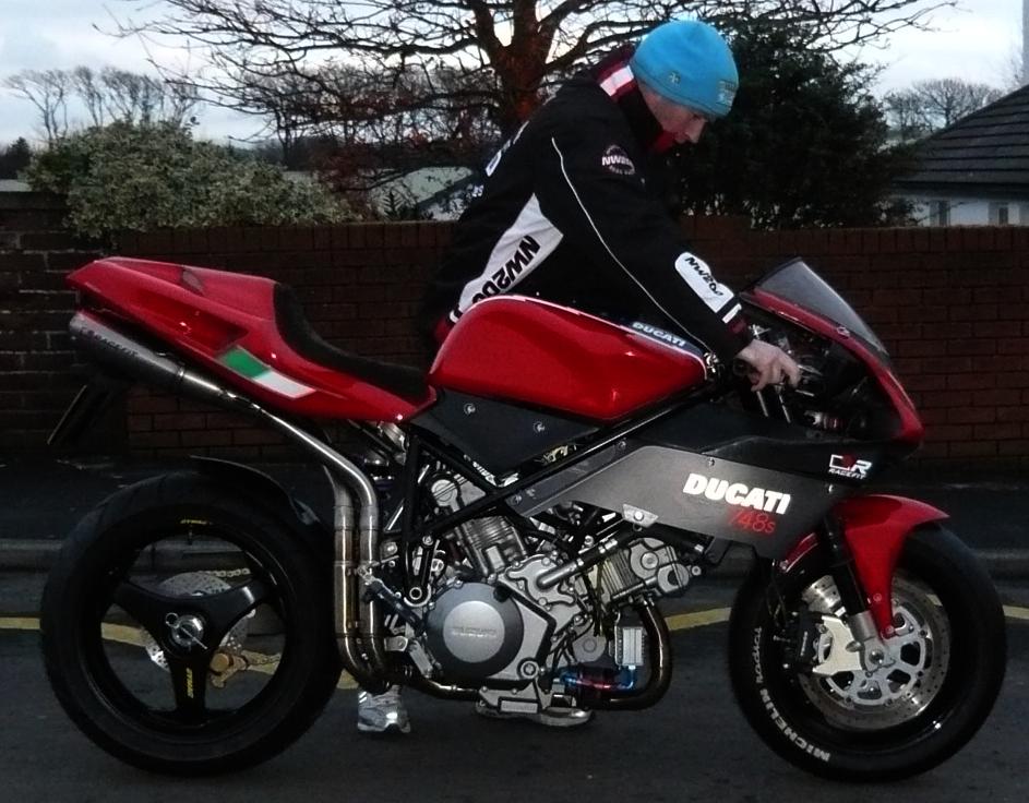 Con todo esto, llegó el momento de saber si todo funcionaba... y ya podéis ver las imágenes: moto y dueño rodando en Cadwell Park (R.U.) sin más problema que ¡¡un exceso de ruido con los escapes RaceFit!! Un cambio por los Termiglioni de la Ducati fue suficiente para disfrutar en la pista...